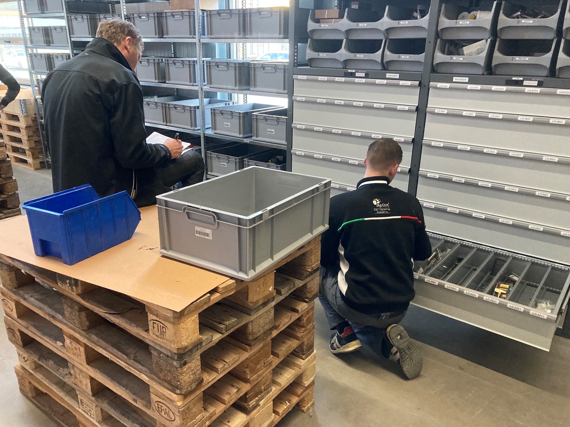 En daar zijn er veel van. In totaal telt ons magazijn meer dan 5000 artikelen. Sommigen groot, maar velen ook zo klein dat het zelfs met een tel bak flink focussen is. Gelukkig is het met de radio aan en een bak koffie met saucijzenbroodje erbij, goed te doen.